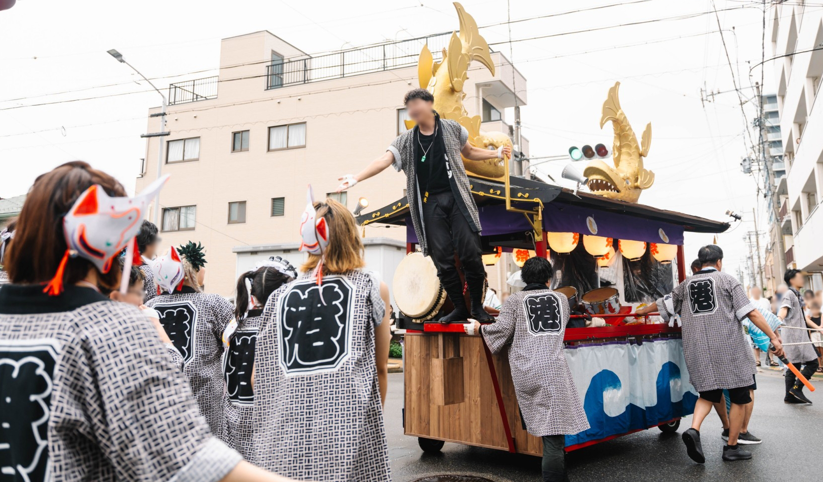 笛、鐘、太鼓、パフォーマンス、老いも若きも一緒になって楽しみ、祭りを盛り上げています。「踊るあほうに見るあほう、同じアホなら踊らにゃ そんそん」が高六町内会の祭りに対する姿勢です。