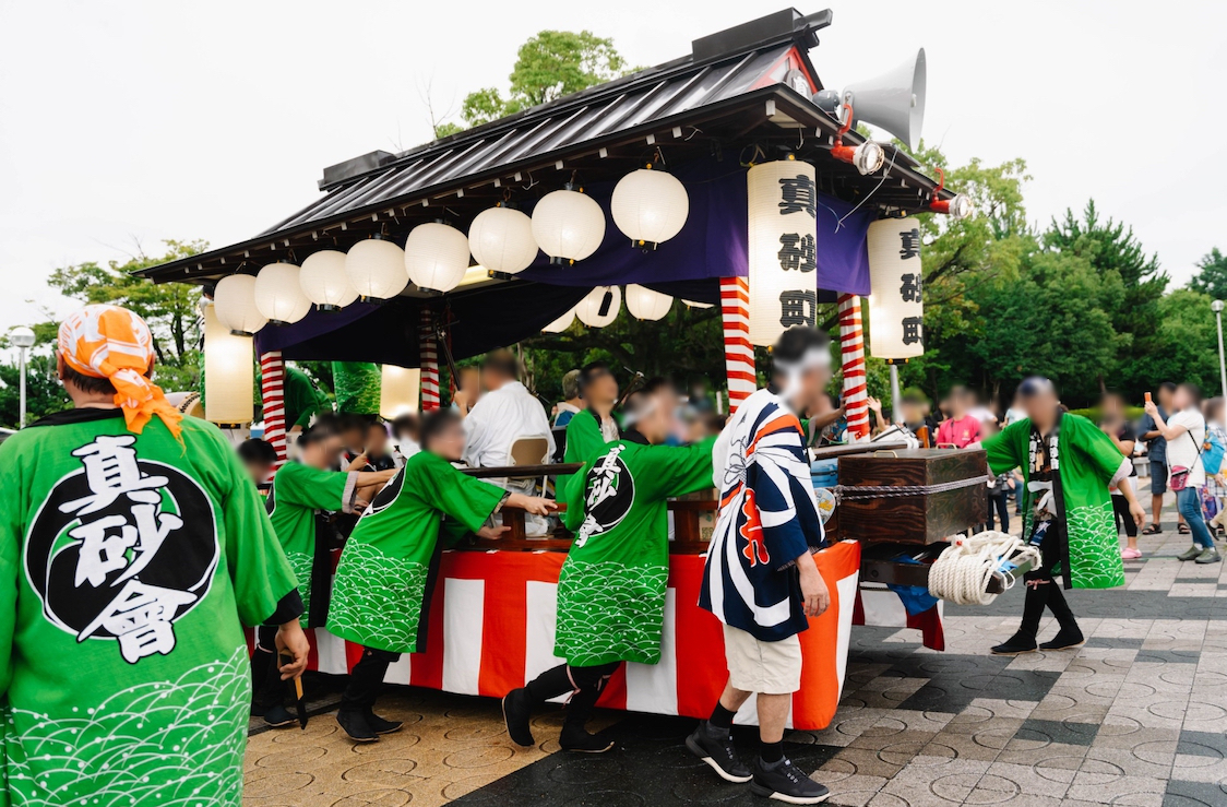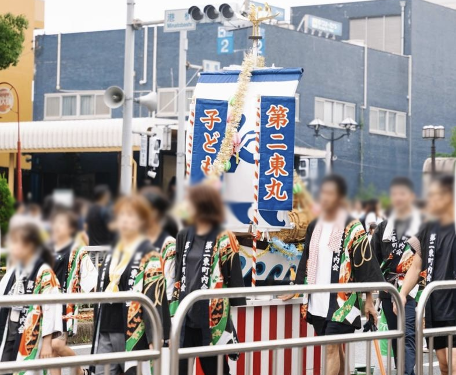 日本一やかましい祭り「桑名石取祭(くわないしとりまつり)」の流れを汲む、鉦(かね)、太鼓とともに、老いも若きもひとつになって、みなとの夏と祭を、二号地西部の「みなと丸」が盛り上げます。